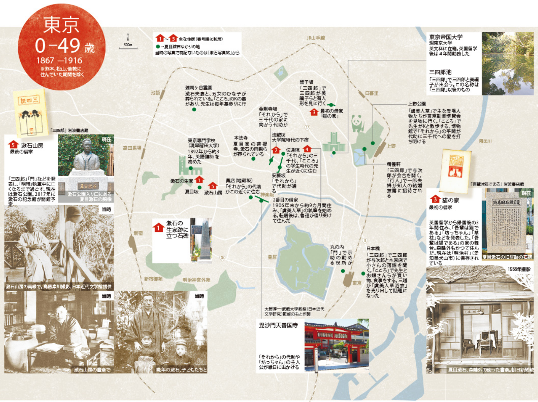 「三四郎」で熊本から上京した主人公は、近代化で変わる東京が「大変な動き方」だと驚く。町並みの急激な変化は今も同じだろう。当時の面影が残る場所は少ないが、登場人物に寄り添い歩くことで、漱石の見た東京が確かに浮かび上がってくる。