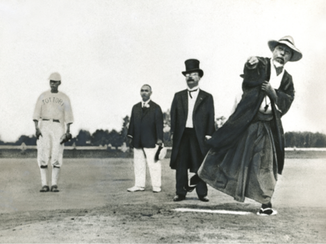 11(明治44)年当時、野球人気が過熱し応援団の対立や不祥事などが起こり、世間では野球を非難する声が高まった。朝日新聞は野球撲滅の趣旨ととれる野球害毒論を唱えた。それから4年。教育的見地から野球の有用性を唱える考えを理解した村山社長が開催を決断した。