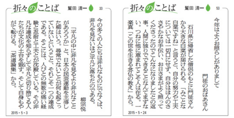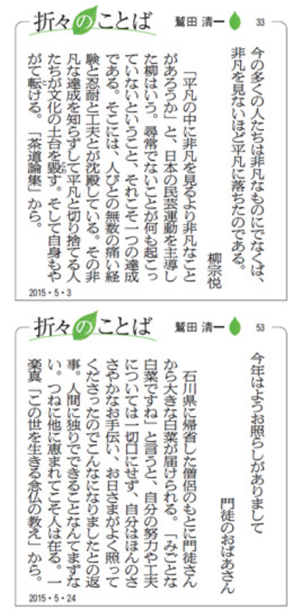 取り上げることが多いのは、ひとひねりある、普通とは違う物の見方をしていることばです。たとえば民芸運動を主導した柳宗悦のことば(2015年5月3日)。自分の凡庸な考えをひっくり返されると気持ちがいいですね。
